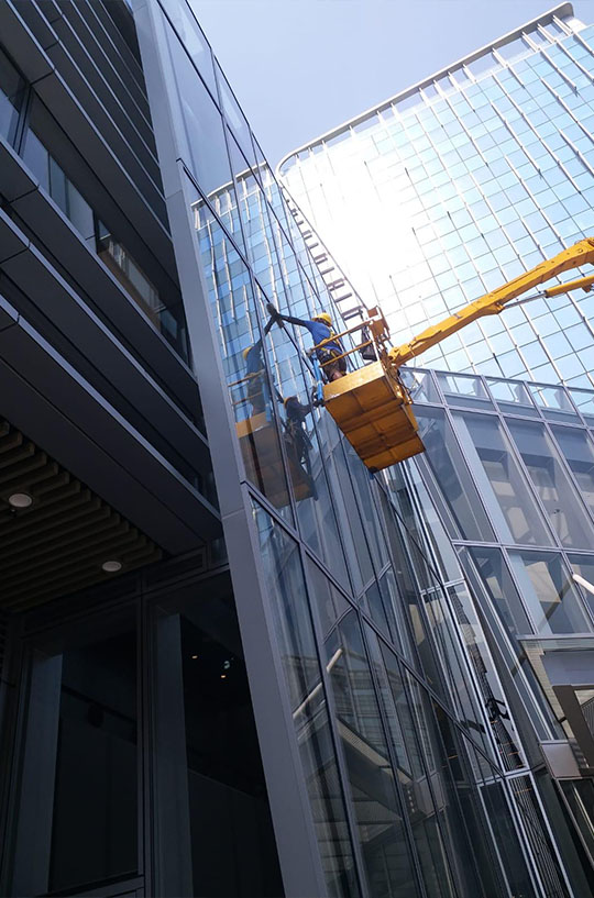 專業高空工作團隊會為大廈玻璃幕牆及外牆不同的清潔位置設計,在進行施工前務必實地視察和評估工作風險。因應設施的所用物料,提供適合的的清潔方案,令建築物保持最美外觀。